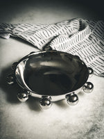This stoneware bowl showcases a mesmerizing design with its reactive glaze and cream color speckled finish, making each piece truly unique and distinctive. This cream-colored speckled stoneware bowl with orbs, which combines organic charm and contemporary elegance with its reactive glaze finish, is a versatile and artistic centerpiece or decorative accent, perfect for farmhouse, bohemian, and eclectic home decors. Its spacious size and shallow depth make it perfect for serving salads, fruits, and snacks, or even as a decorative display for orbs, potpourri, or other small decorative items. Made of stoneware.