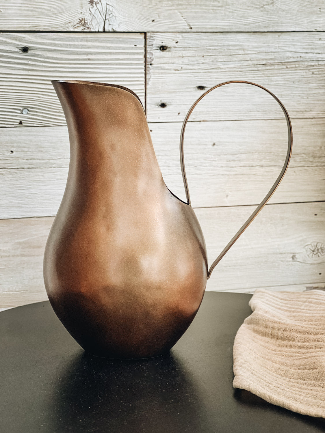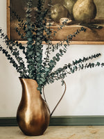 Bring sculptural beauty to your space with this aged bronze-colored vessel, a striking blend of modern minimalism and timeless classic design. Its poetic silhouette and hand-crafted texture make it as captivating empty as it is filled with flowers or greenery. Made with high-end, artisan construction and finished in a warm bronze patina, this piece catches light beautifully and adds quiet elegance to any room. Food safe and versatile, it transitions seamlessly from tabletop centerpiece to artful display object, embodying refined craftsmanship and understated luxury.