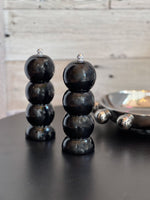 Add a bold touch to your kitchen or table with this modern black enamel pepper mill, designed with a playful pop art silhouette that doubles as functional art. Sleek yet sculptural, it’s crafted for both pepper and salt grinding, combining versatility with high design. The glossy black enamel finish gives it a contemporary edge, while its curvy, eye-catching shape adds personality and charm. Perfect for everyday use or as a conversation-starting accent, this grinder elevates your dining experience with both style and substance. Sold as a single grinder.