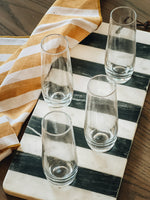 Toast to life without a stem in sight. Unlike traditional flutes, these sleek alternatives offer a a more stable design, with ample room for the subtle notes of your bubbly to take flight.