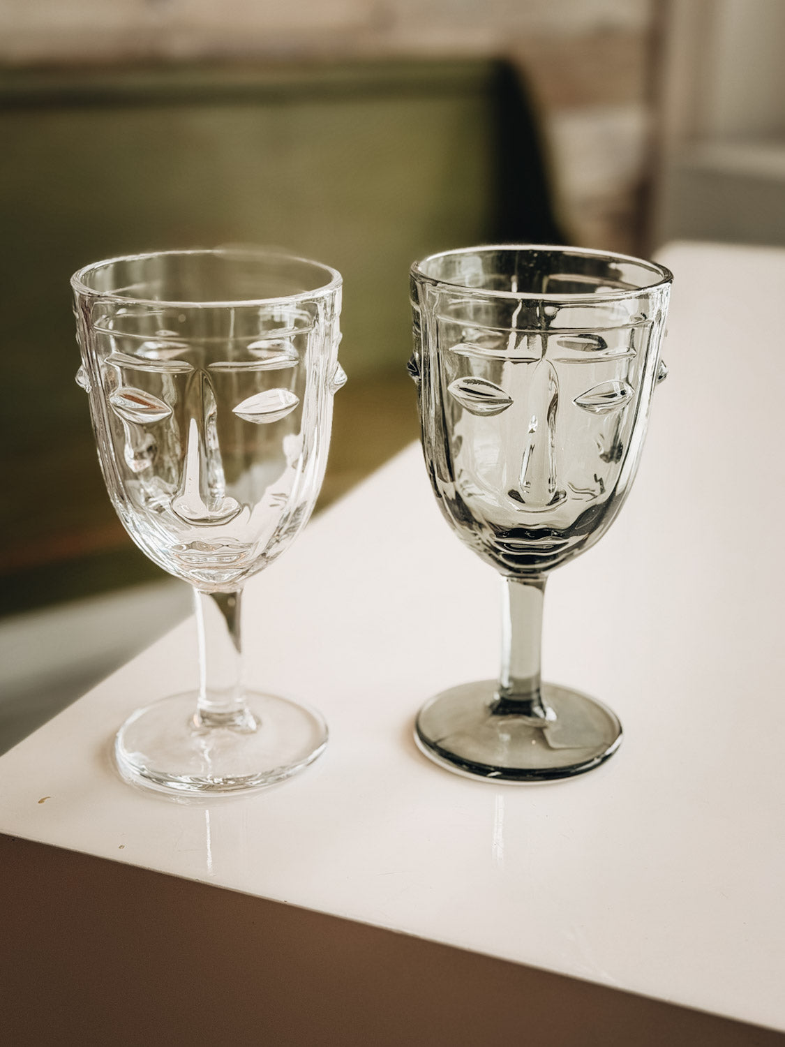 You'll never drink alone again with a set of these sturdy and sustainably made goblets crafted by hand in France. Invite these unflappably faced friends to the party and toast to la belle vie in attractive shades of amber and green.